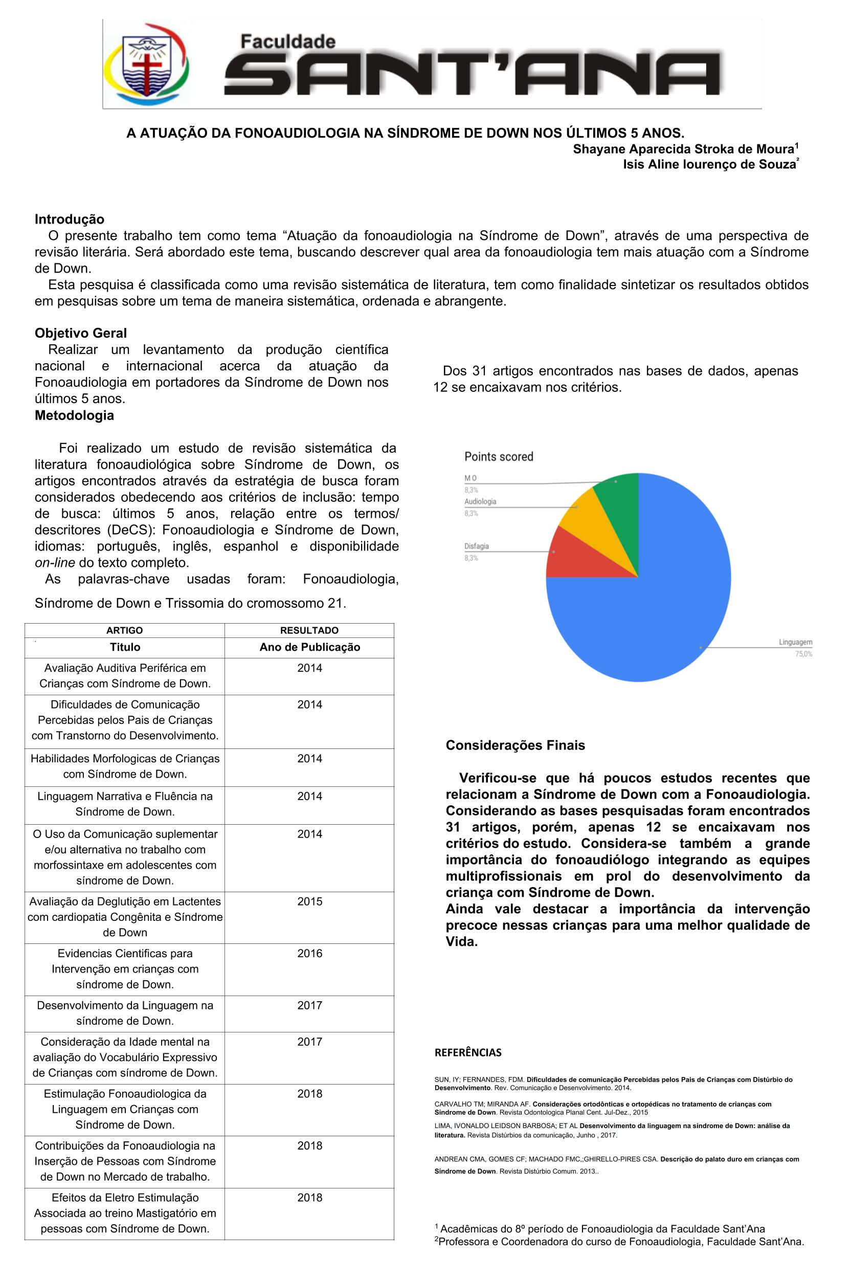 ATUAÇÃO DA FONOAUDIOLOGIA NA SÍNDROME DE DOWN. (2018). Anais Da Jornada Científica Dos Campos Gerais, 16. https://iessa.edu.br/revista/index.php/jornada/article/view/1132